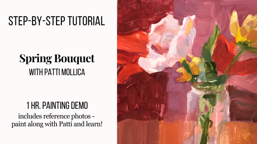 Start simple with translucent paint, finish up with thicker opaque strokes, Paint a Lively Spring Bouquet in One Sitting