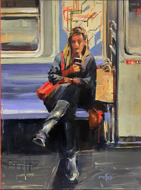 Figures in public spaces can feel challenging, but this demo makes the process clear and approachable. You’ll learn how to capture the mood of a quiet subway moment using bold shapes, strong design, and painterly color. Rather than focusing on every detail, Patti shows you how to create a painting that feels fresh, believable, and full of character.